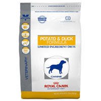 Royal Canin Veterinary Diet Canine Hypoallergenic PD Potato and Duck Dry Dog Food is formulated to aid in the treatment of dermatological and/or intestinal problems including gastrointestinal upsets, inflammatory bowel disease and skin eruptions.
